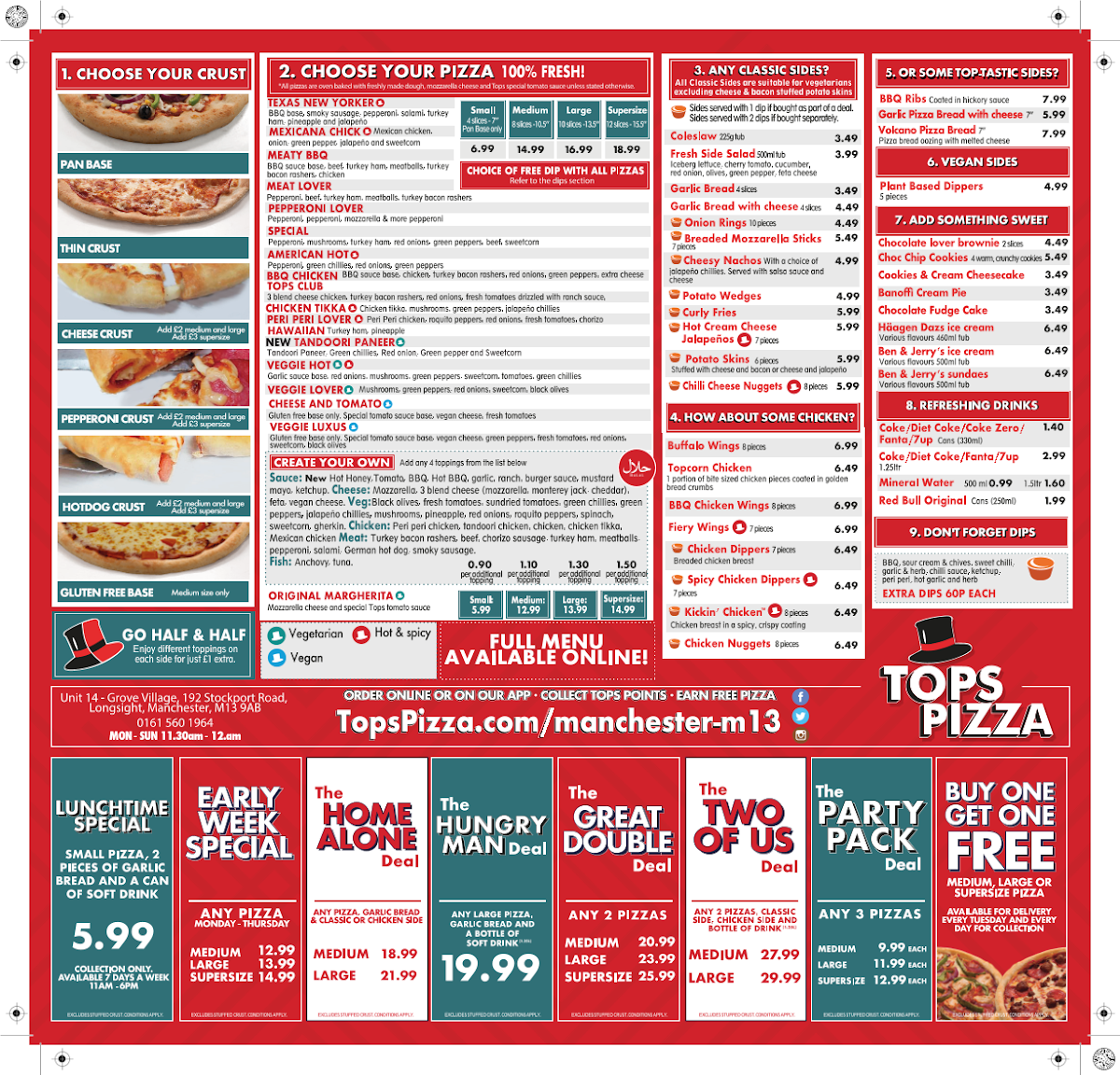 With a commitment to quality and speedy service, Tops Pizza is quickly becoming a local favorite in Ardwick. Indulge in a slice of flavorful perfection!